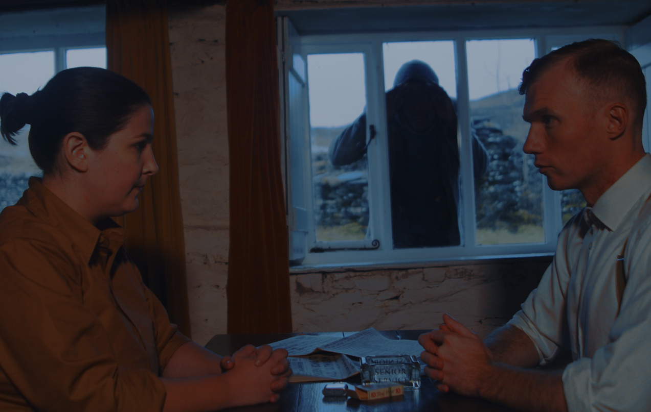 From the earliest sketches to the final cut, the visual tone of Eagle’s Nest was carefully shaped to evoke the atmosphere of a 1940s suspense thriller – stark contrasts, shadowed tension, and music woven through every frame to heighten emotion and unease.